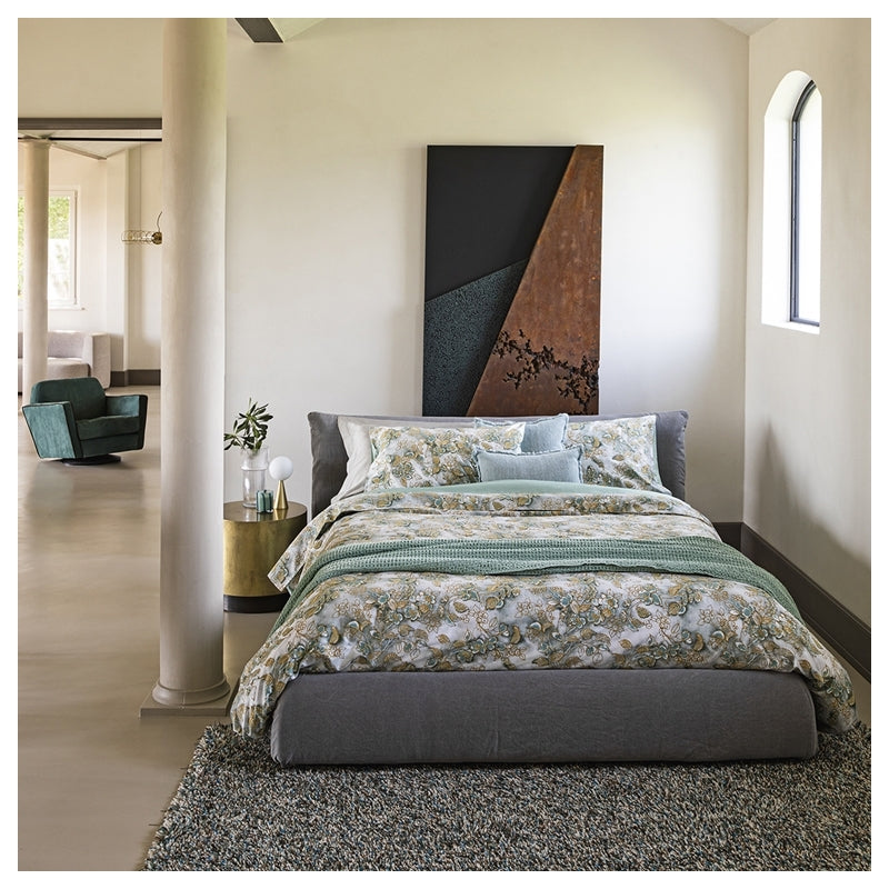 La collezione Chinoiserie, che nasce da lunghe ricerche e sperimentazioni nell’ambito della stampa, fa risplendere la passione per le ceramiche orientali che ha pervaso l’aristocrazia europea nel XVIII secolo. Il disegno floreale proposto in Ocra o Surf emerge sul fondo dall’effetto acquarellato e diventa tridimensionale grazie al profilo floccato e dorato. Il quilt trapuntato esalta in maniera straordinaria la tridimensionalità e la lucentezza dei contorni.Trapuntato a capo, è rifinito a mano con due angoli sagomati Ovatta Talko® creata con micro fibre calandrate di bassa denaratura. La calandratura della superficie impedisce il peeling e rallenta la penetrazione dell'aria fredda dall'esterno, creando condizioni di benessere ottimali.