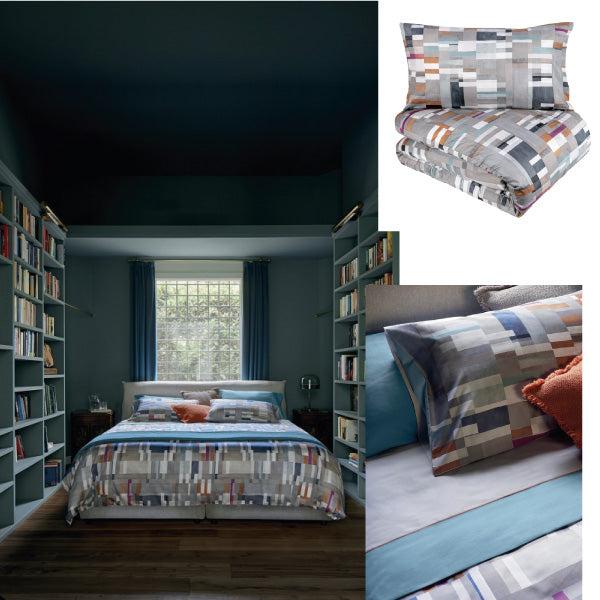 Preziosa stampa digitale. Raso 300TC di puro cotone Trapuntato a capo, è rifinito a mano con due angoli sagomati.Dimensioni:2 piazze: 270x270 cmLa stampa digitale dona alla texture geometrica una profondità materica che viene esaltata nel...