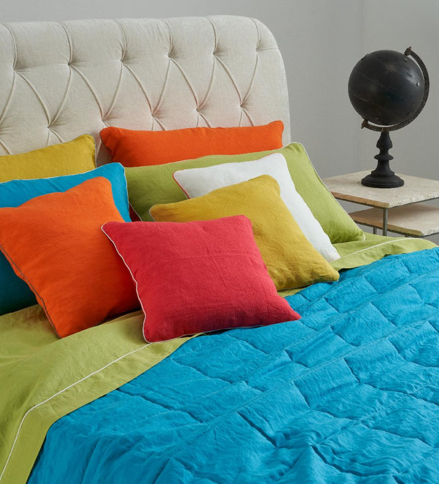 Quilt in lino nobilitato soft finishing con interno anallergico e imbottitura 100 gr/mq. Trapuntatura a quadri e angoli retti. 100% lino Misura 270*270