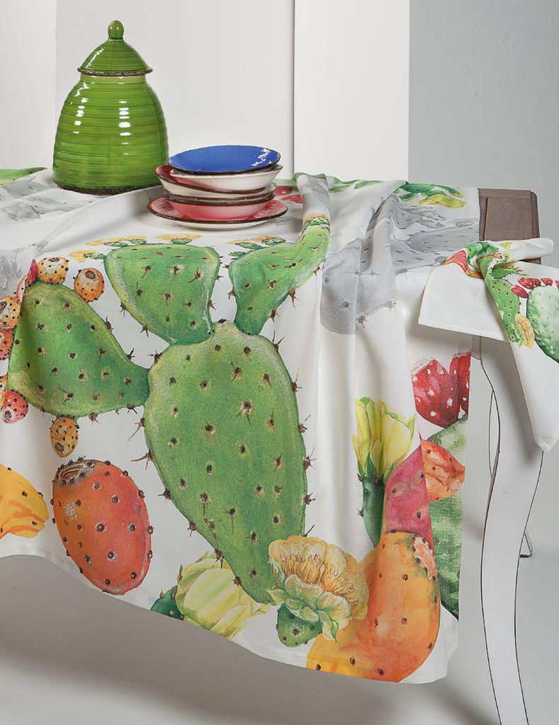 Tovaglia in tessuto riciclato 14% lino 86% Cotone Stampa digitale Macro disegni per la tovaglia e micro per i tovaglioli. Misura 180*360 + 18 tovaglioli Confezione scatola cartone riciclato. Nuova Collezione sostenibile