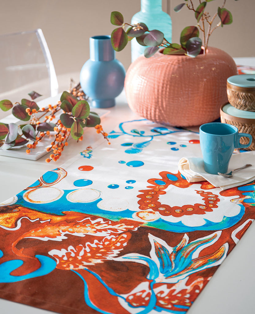 Tovaglia stampata da 6/8 posti in 100% cotone panama con trattamento antimacchia. Misure: 170x230 cmTessuto: 100% cotone panamaMade in Italy