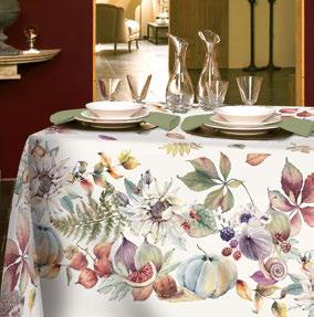 Tovaglia in tessuto riciclato 14% lino 86% Cotone Stampa digitale Macro disegni per la tovaglia e micro per i tovaglioli. Misura 180*360 + 18 tovaglioli Confezione scatola cartone riciclato. Nuova Collezione sostenibile