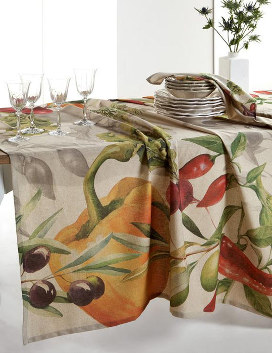 Tovaglia stampata da 6/8 posti in 100% cotone panama con trattamento antimacchia. Misure: 170x230 cmTessuto: 100% cotone panamaMade in Italy