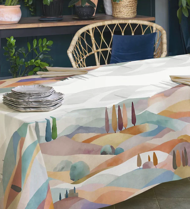 Tovaglia in 100% panama di cotone stampato, dai colori e fantasie vivaci che donanoallegria alla tua tavola.Tovaglia da 6Misura 150*180 Senza tovaglioli