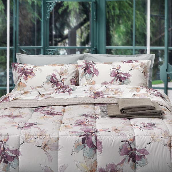 Trapunta Mika - Una texture floreale acquerello con Mika, la trapunta matrimoniale in fine percalle di puro cotone della Collezione Wonder di Somma 1867. Disponibile esclusivamente nella dimensione matrimoniale 260x260, con fodera double-face,sopra e sotto...