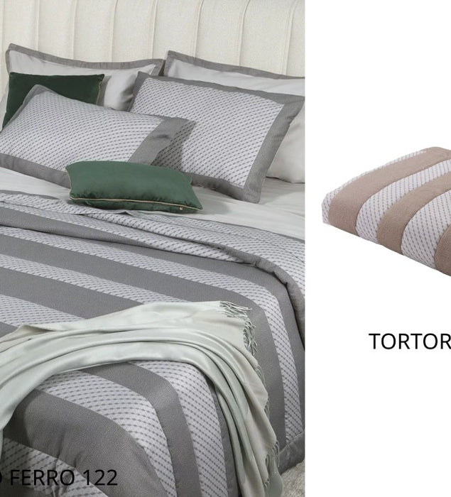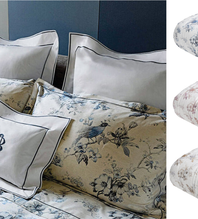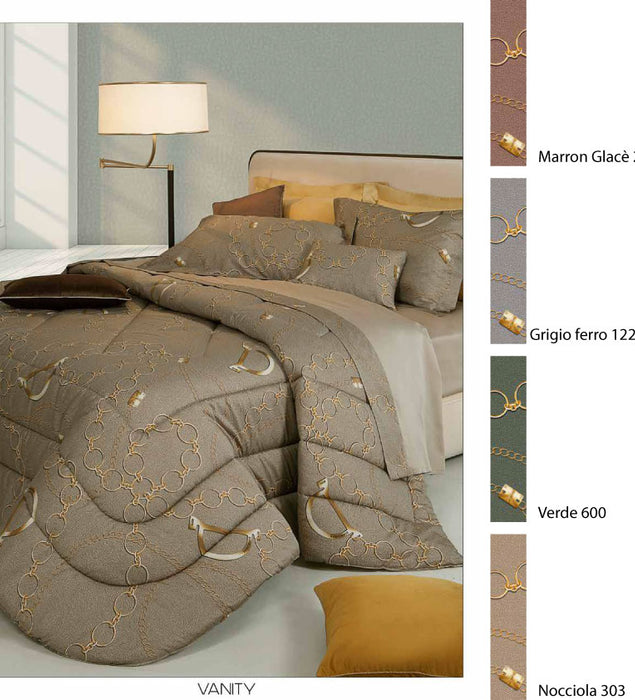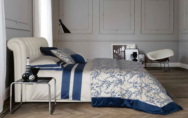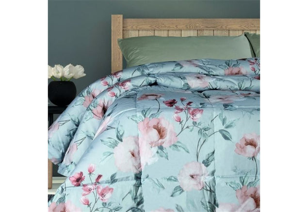 Trapunta matrimoniale con fresca stampa all over e logo Blumarine stampato nel tessuto. Misure: 270x265 cm Tessuto sopra: 100% percalle di cotone stampato all over Tessuto sotto: 100% cotone Imbottitura: 100% poliestere 340 g/mq Made...
