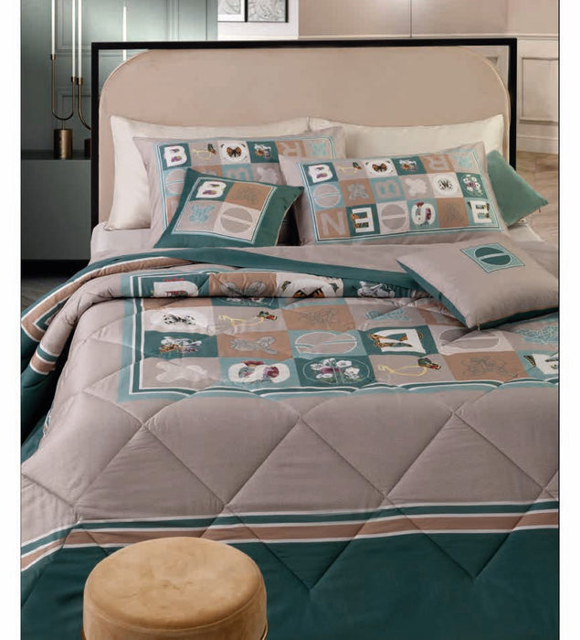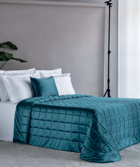 Trapunta realizzata in percalle di cotone 200 T.C. stampato in digitale con motivi geometrici esaltati dalla trapuntatura piazzata e rifinita a mano con angoli stondati. Vesti la tua camera da letto con lo stile e...