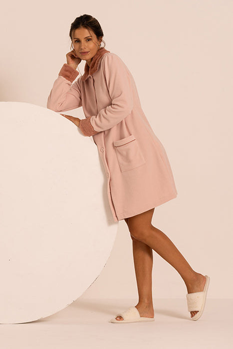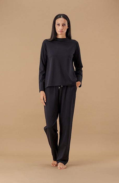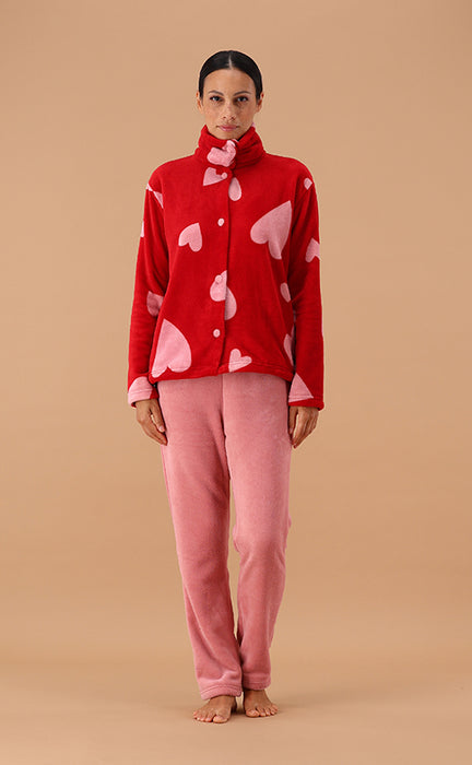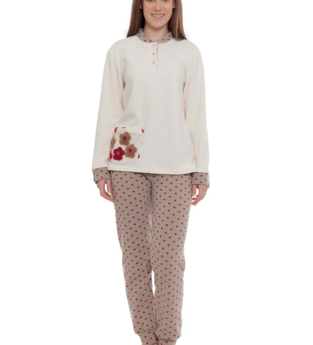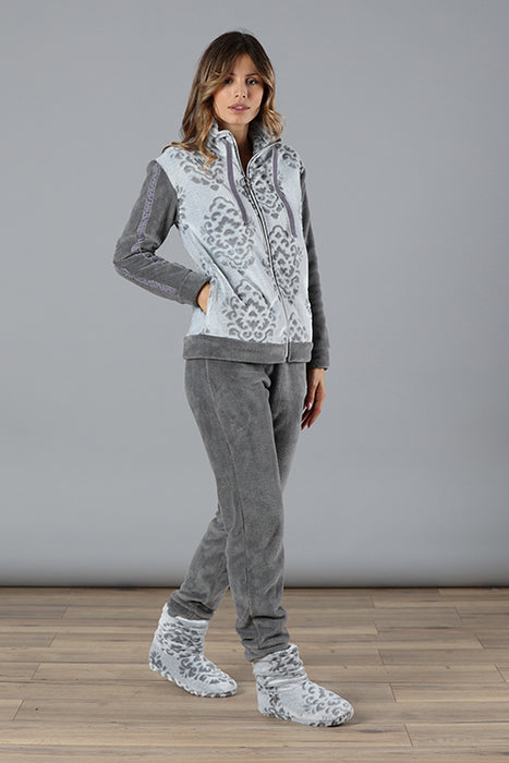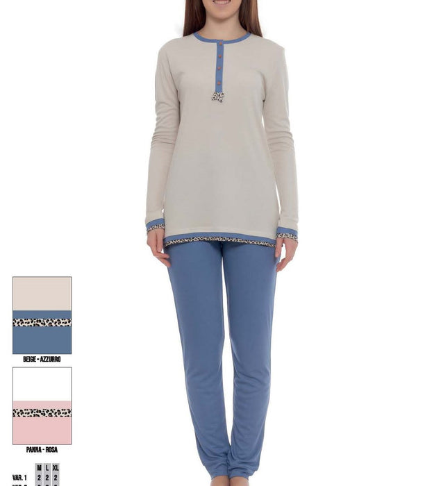 Pigiama da uomo in tessuto melange con collo serafino dal design particolare e scollatura con piccoli bottoni, ideale per un look rilassato ma sofisticato grazie anche al piping abbinato al pantalone. La stampa del logo a petto in rilievo è un altro elemento distintivo: che aggiunge personalità al pigiama. Il pantalone in contrasto si abbina perfettamente alla maglia ed è dotato di elastico in vita e tasche alla francese per il massimo comfort e libertà di movimento durante il riposo e polso sul fondo. Nel complesso, questo pigiama unisce eleganza e funzionalità, perfetto per l’uomo che apprezza lo stile anche nei momenti di relax.