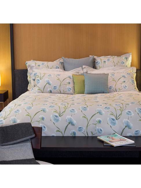 Completo letto Matrimoniale di Signoria di Firenze, articolo ALASSIO variante BLU. Misura lenzuolo sopra 250*290cm. Misura lenzuolo sotto con angoli 180*200cm. Due federe 50*80cm con tre volant. Composizione 100% prezioso raso di cotone egiziano, titolo...