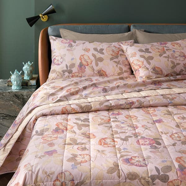 Copriletto Trapuntato Altea - Altea, un elegante motivo dalle tonalità delicate, un viaggio nel tempo che prende ispirazione dall arte antica e dagli affreschi.Il nuovo copriletto trapuntato Altea è realizzato in fine percalle di puro cotone, double-face sopra stampato e sotto a righe. Disponibile esclusivamente nella dimensione matrimoniale 270x270 con imbottitura in morbida fibra anallergica di poliestere da 90g/mq. Il copriletto trapuntato assicura il giusto tepore nelle mezze stagioni, coniugando la giusta traspirabilità e miglior comfort termico. Da coordinare con la il lenzuolo-copriletto della stessa collezione.Disponibile esclusivamente nella dimensione matrimoniale cm 250x290.La collezione Flora, bucolica e dal gusto pittoresco, celebra la bellezza senza tempo della natura floreale, pensata per creare in camera da letto, un atmosfera fine e ricercata. E' certificata Oeko-tex che garantisce l'assenza di sostanze nocive per la salute dell'uomo.