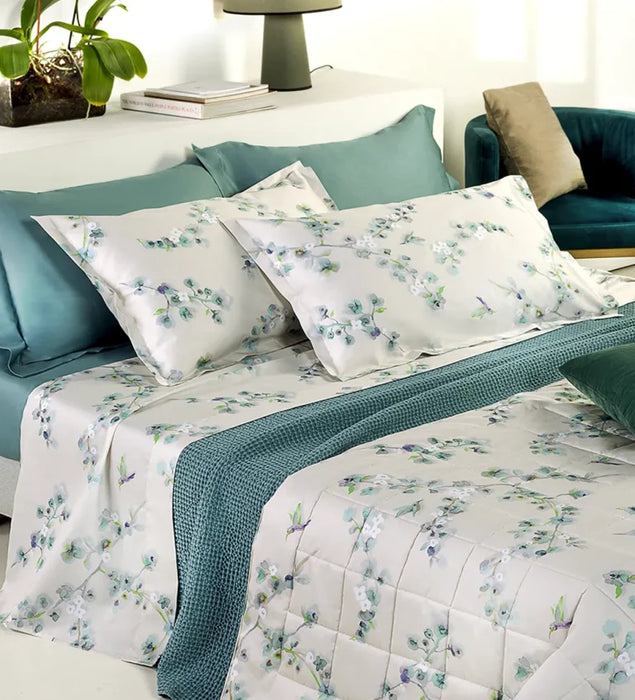 Trapunta Sybil - Un trionfo di ramoscelli e bacche autunnali con Brigitte, la nuova trapunta della Collezione Privè di Somma 1867, stampata in morbido e fine percalle di puro cotone con imbottitura 100% poliestere. Perfetta per vestire il letto con l'arrivo dell'autunno e in vista dell'inverno, per un caldo riposo ogni giorno. Peso 320 g/mq. Da coordinare con il completo lenzuolo della medesima collezione. Le pregiate materie prime vengono attentamente ed accuratamente selezionate da SOMMA tra le fibre tessili più nobili da cui nasce una biancheria letto che scalda l'ambiente con classe ed eleganza. E' certificato Oeko-tex che garantisce l'assenza di sostanze nocive per la salute dell'uomo. Ideato, tessuto, stampato e confezionato interamente in Italia.