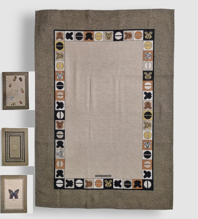 Canovaccio in panama di cotone 100% Tinta unita con bordo applicato stampato con l'iconica stampa Borbonese. 100% Cotone Misura 50x70