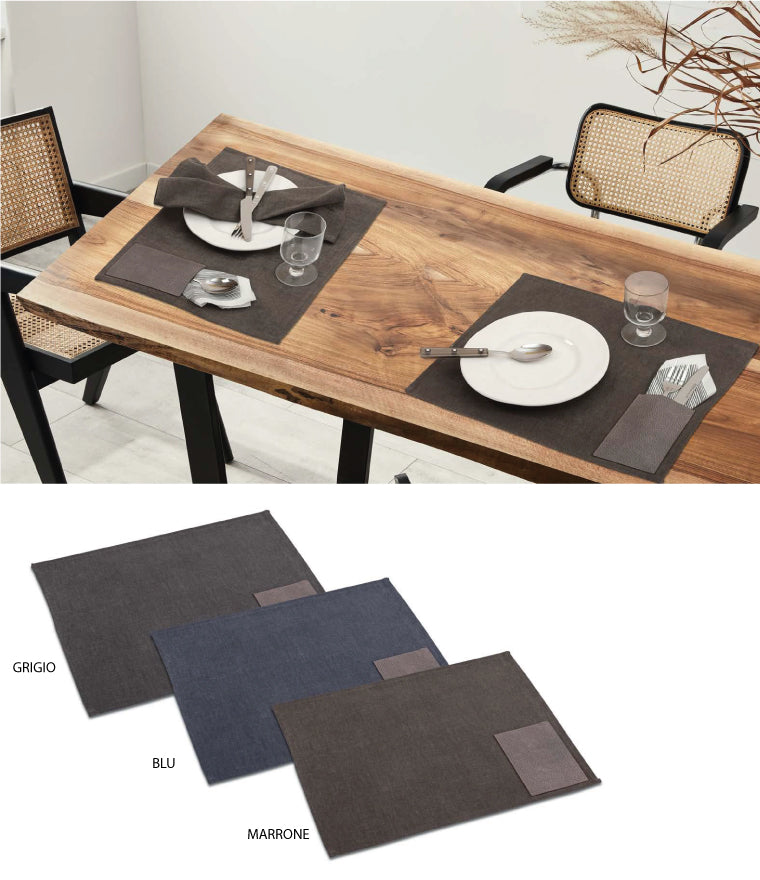 Set americana Stone washed con tasca in ecopelle cm 49x39Composizione: 100% Drill di cotone
